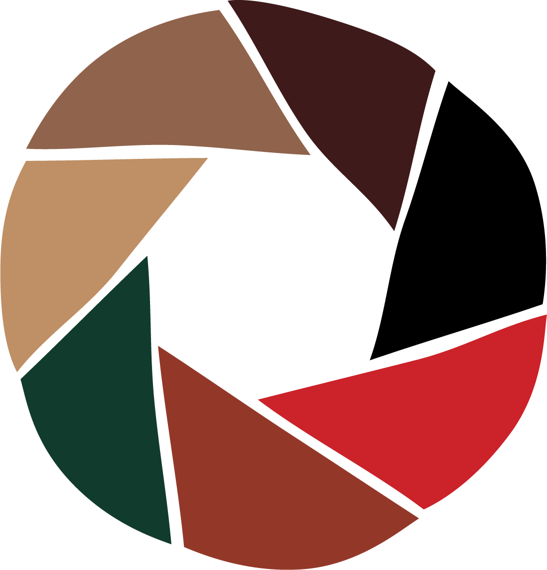 A multi-segmented logo mark inspired by a camera aperture—symbolizing both the film industry and the act of opening up to new perspectives. Each segment is rendered in earthy, vibrant tones to reflect the diversity of people and ideas COCO represents. The hand-drawn aesthetic emphasizes authenticity and grassroots connection, aligning with the initiative’s focus.