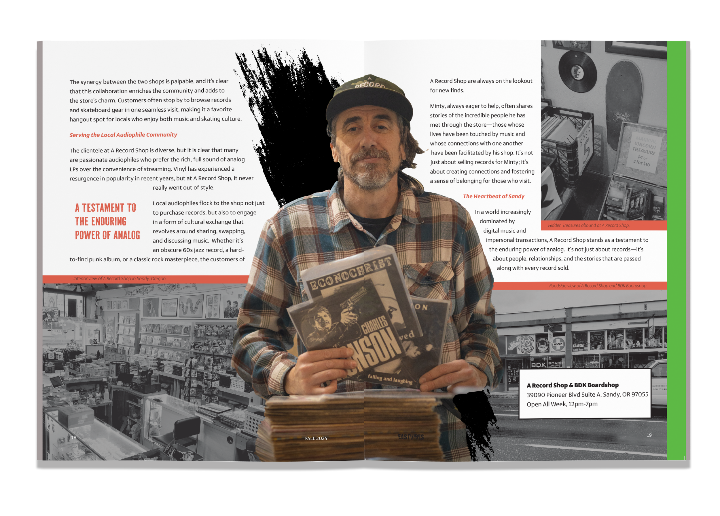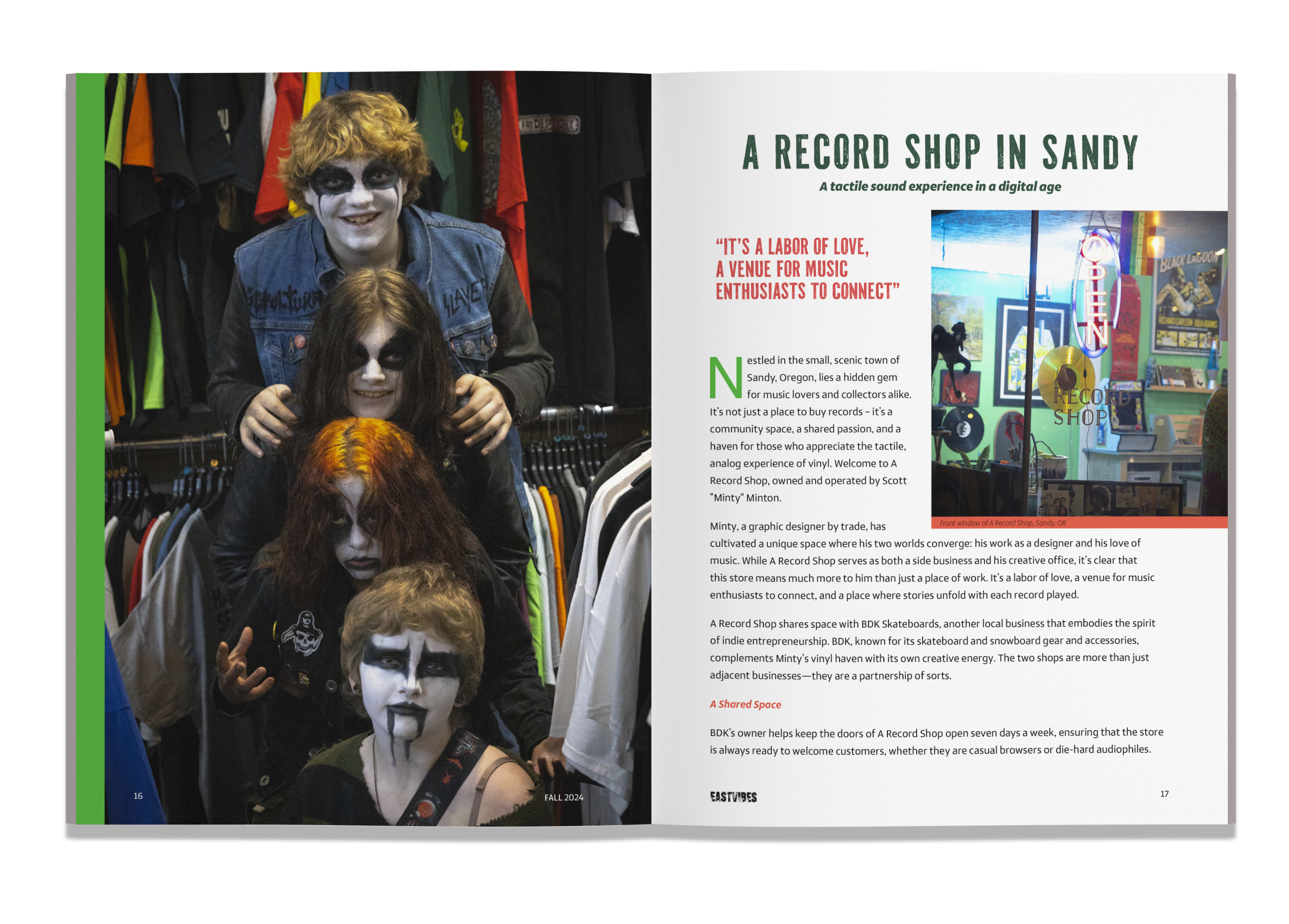 In collaboration with fellow students, multiple feature articles were researched and written, including conducting in-depth interviews to ensure the narratives were authentic and compelling. Layout and graphic systems were developed to create a visually coherent publication by unifying typography, image treatments, and thematic elements.